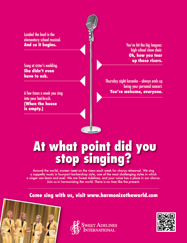 Pieces of copy work I did for Sweet Adelines International. This includes many different promotional efforts and should not be taken as one cohesive campaign.